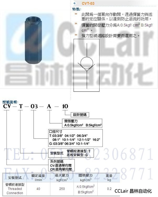 CVT-03-A-10,CVT-03-B-10,單向閥