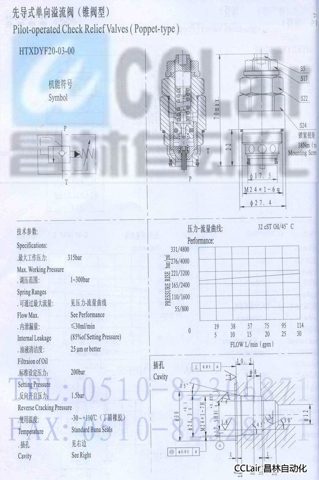 HTXDYF20-03-00,先導式單向溢流閥(錐閥型)