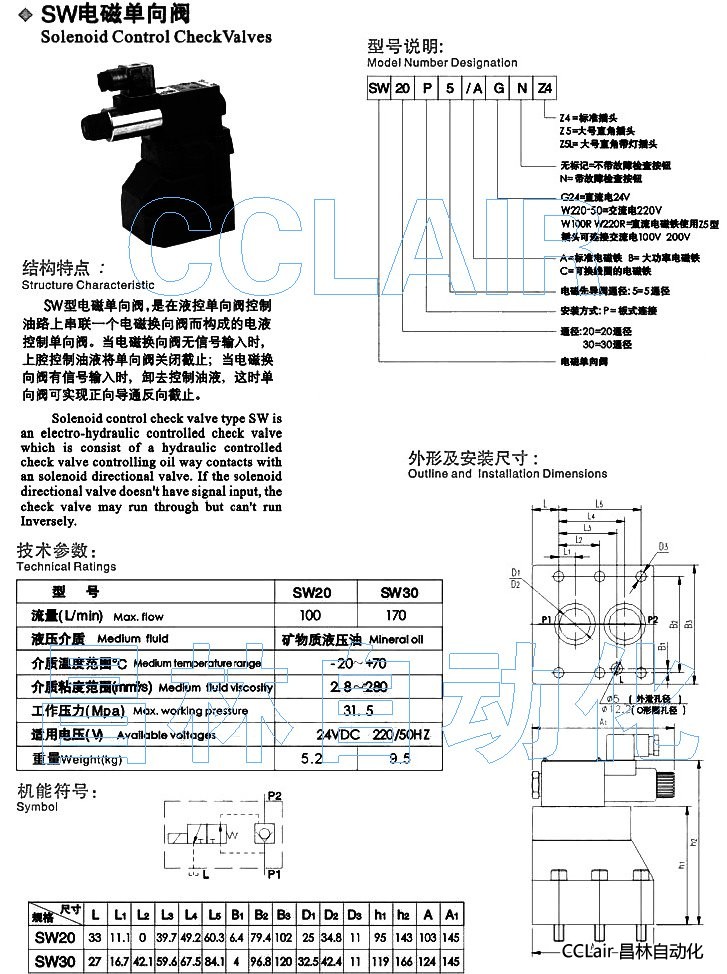 SW30P5/AW220RNZ5L,SW20P5/AW220RZ4,SW20P5/AW220RZ5,電磁單向閥