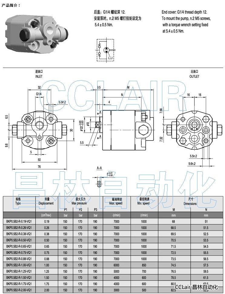BKP0.5B2-R-0.19-VQ1,BKP0.5B2-R-0.26-VQ1,齒輪泵