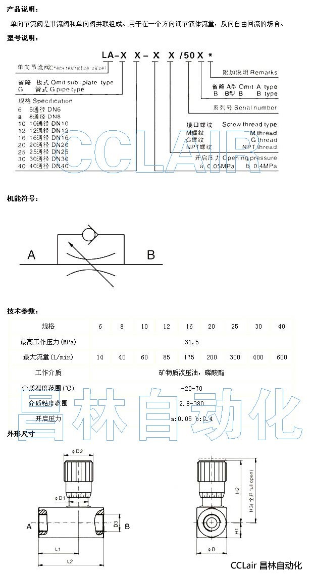 LA-6,LA-8,LA-10,LA-16,LA-20,LA-25,LA-30,LA-40,單向節(jié)流閥