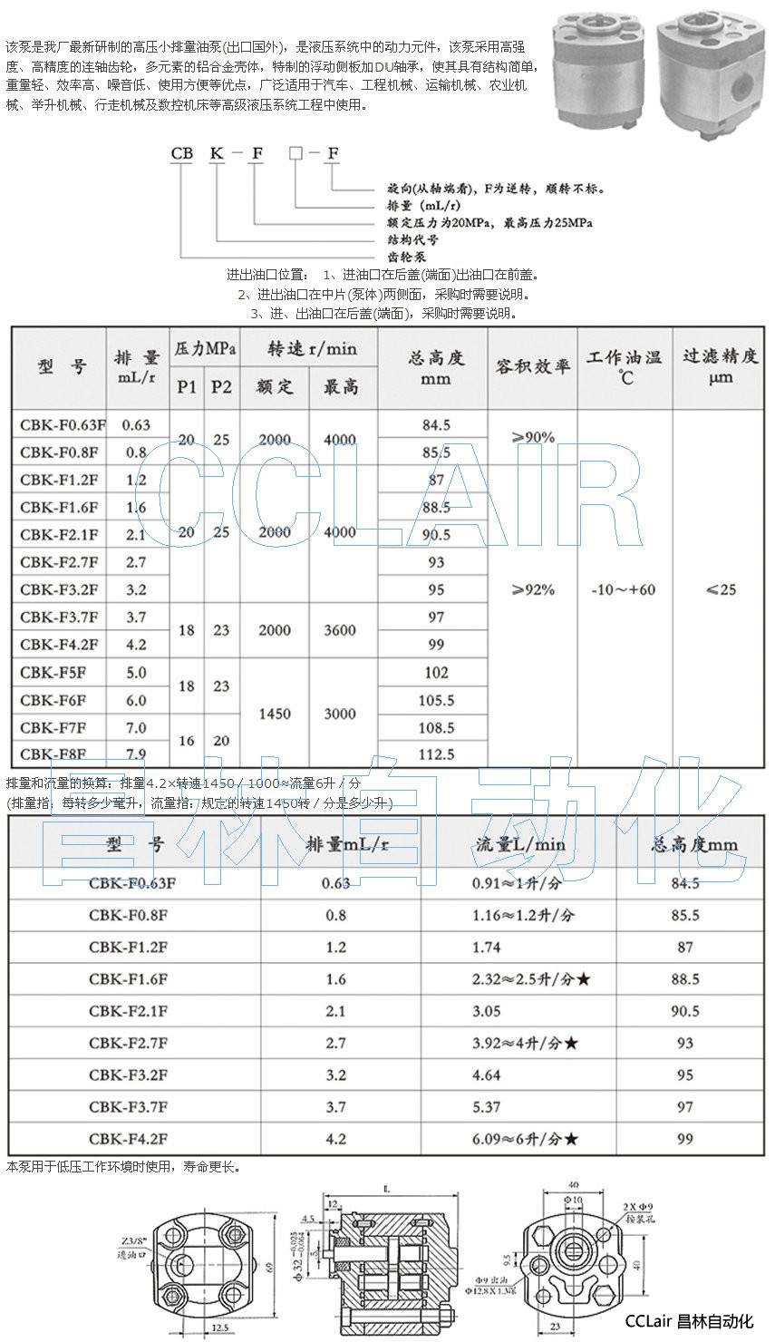 CBK-F0.63F,CBK-F0.8F,CBK-F1.2F,CBK-F1.6F,高壓小排量齒輪油泵