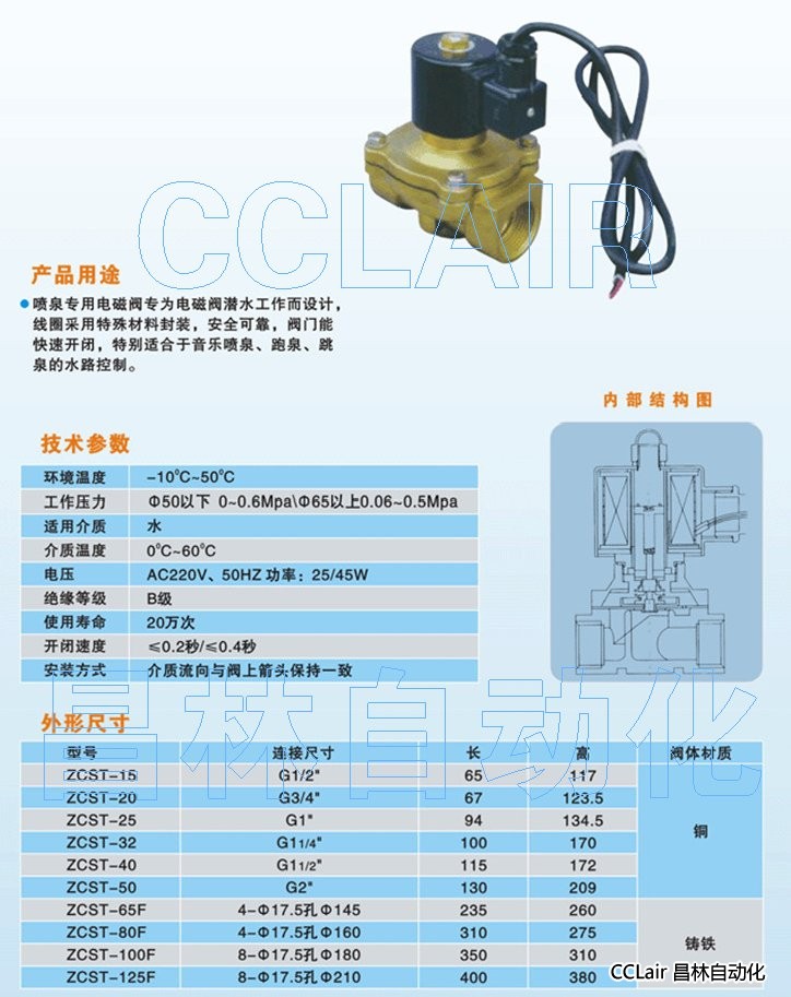 ZCST-15,ZCST-20,ZCST-25,ZCST-32,ZCST-40,ZCST-50,快速開(kāi)閉噴泉專(zhuān)用水下電磁閥