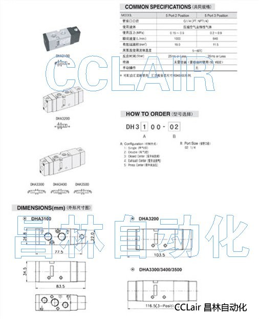 DHA3100-02,DHA3200-02,DHA3300-02,DHA3400-02,5通氣控閥