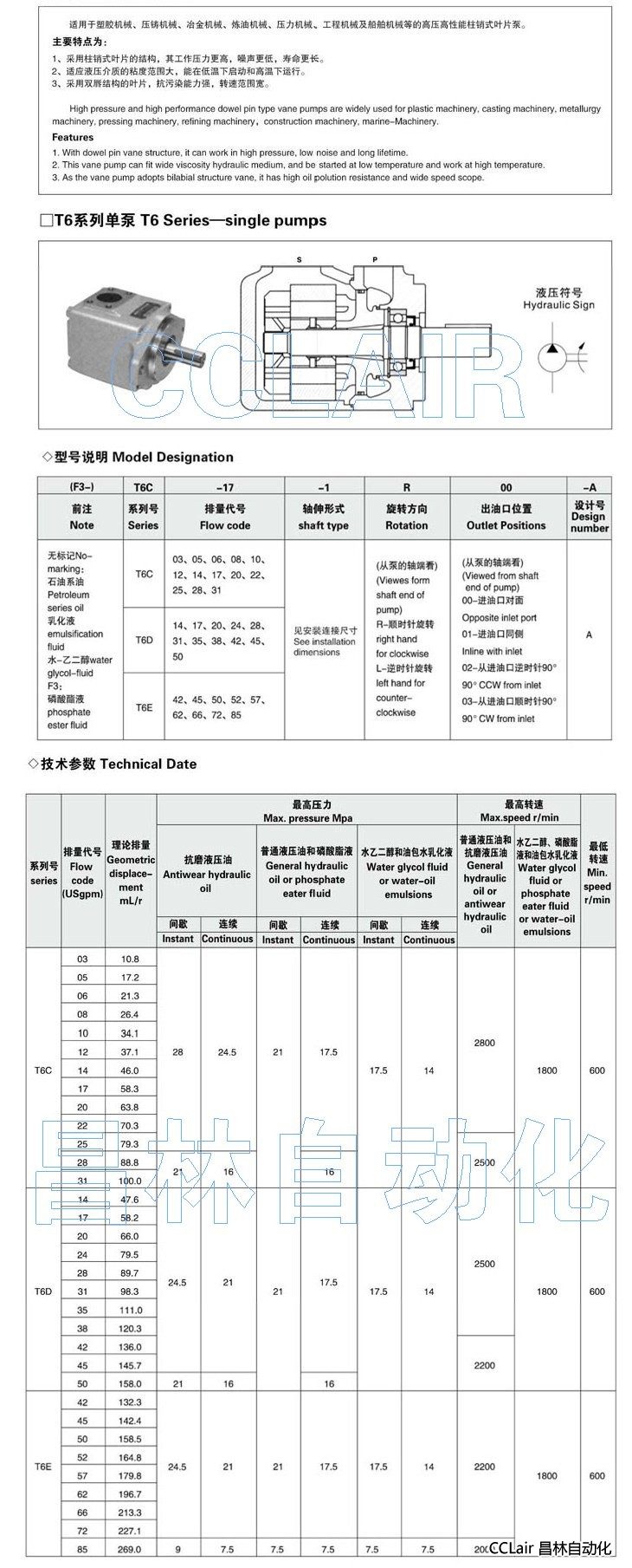 T6E-050-2L00-A1,T6E-050-1R01-A1,T6E-050-2R01-A1,單聯(lián)葉片泵