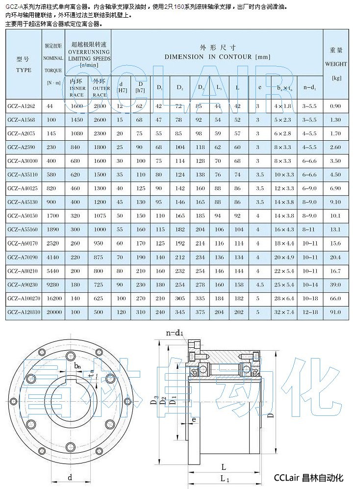 GCZ-A1262,GCZ-A1568,GCZ-A2075,GCZ-A2590,單向離合器