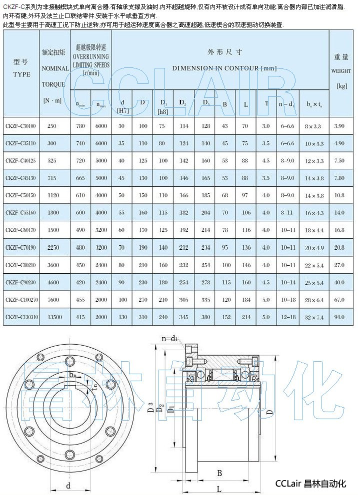 CKZF-C30100,CKZF-C35110,CKZF-C40125,單向離合器