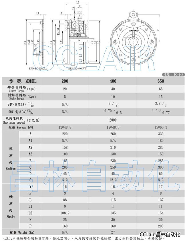 ESUN-RC-200,ESUN-RC-400,ESUN-RC-650,套筒型電磁離合、安全制動(dòng)器組