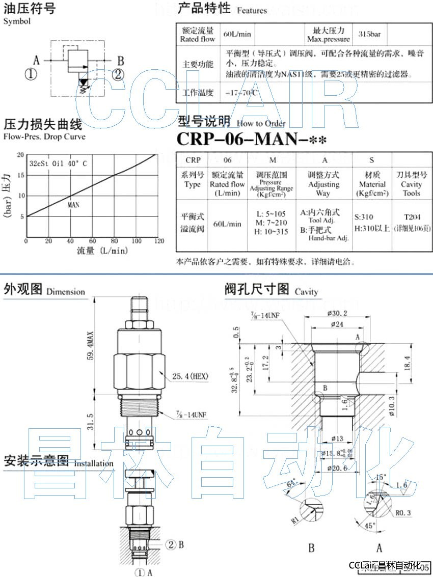 CRP-06-LAN-S,CRP-06-MAN-S,CRP-06-HAN-S,CRP-06-LBN-S,CRP-06-MBN-S,平衡式溢流閥