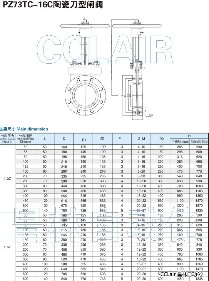 PZ73TC-10C-DN50,PZ73TC-10C-DN65,PZ73TC-10C-DN80,PZ73TC-10C-DN100,陶瓷刀型閘閥