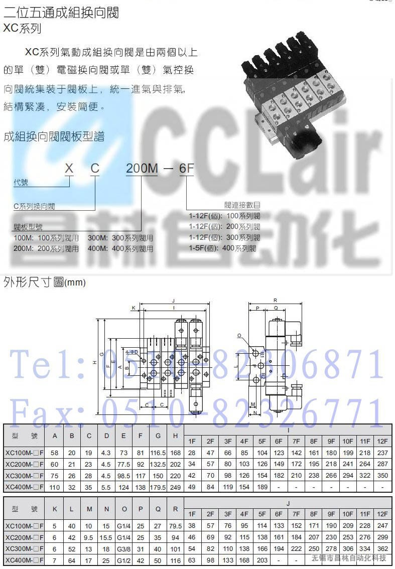 XC300M-3F,XC300M-4F,XC300M-5F,XC300M-6F,XC300M-7F,XC300M-8F,XC400M-5F,二位五通成組閥