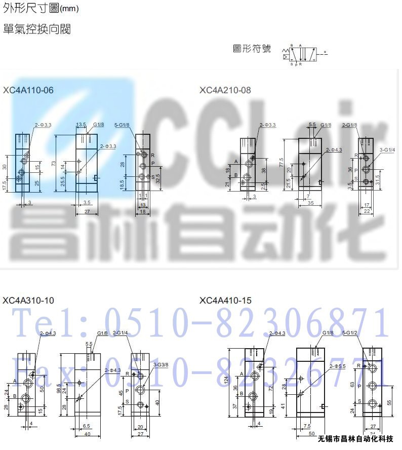 XC4A110-06,XC4A120-06,XC4A210-08,XC4A220-08,XC4A310-10,二位五通氣控換向閥