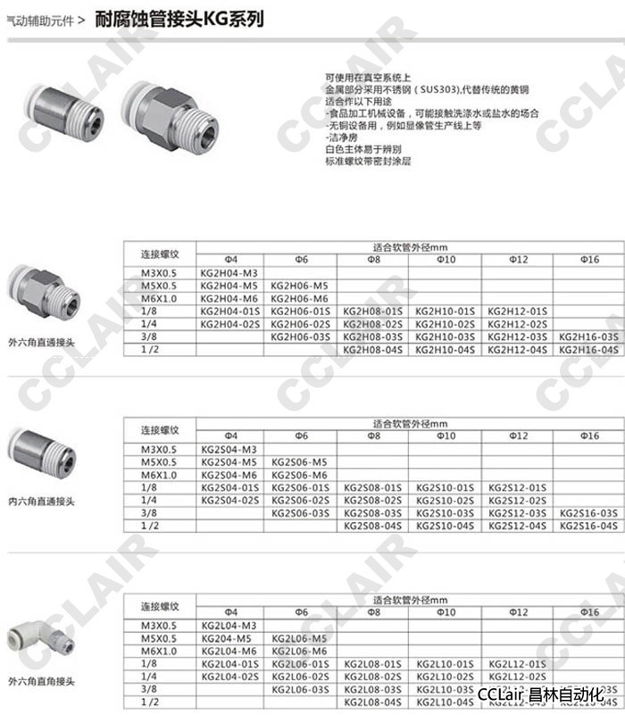 KG2S04,KG2S06,KG2S08,KG2S10,KG2S12,KG2S16,耐腐蝕管接頭
