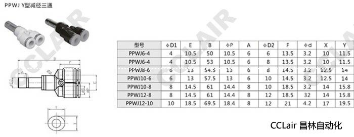 PPWJ6-4,PPWJ8-6,PPWJ10-6,PPWJ10-8,PPWJ12-8,PPWJ12-10,Y型減徑三通接頭