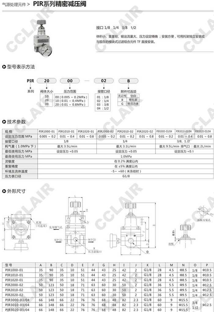 PIR1000-01,PIR1010-01,PIR1020-01,PIR1000-02,PIR1000-03,PIR1000-04,精密減壓閥