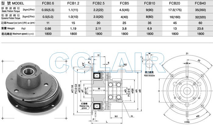 FCB0.6,FCB1.2,FCB2.5,FCB5,FCB10,FCB20,FCB40,電磁式離合器