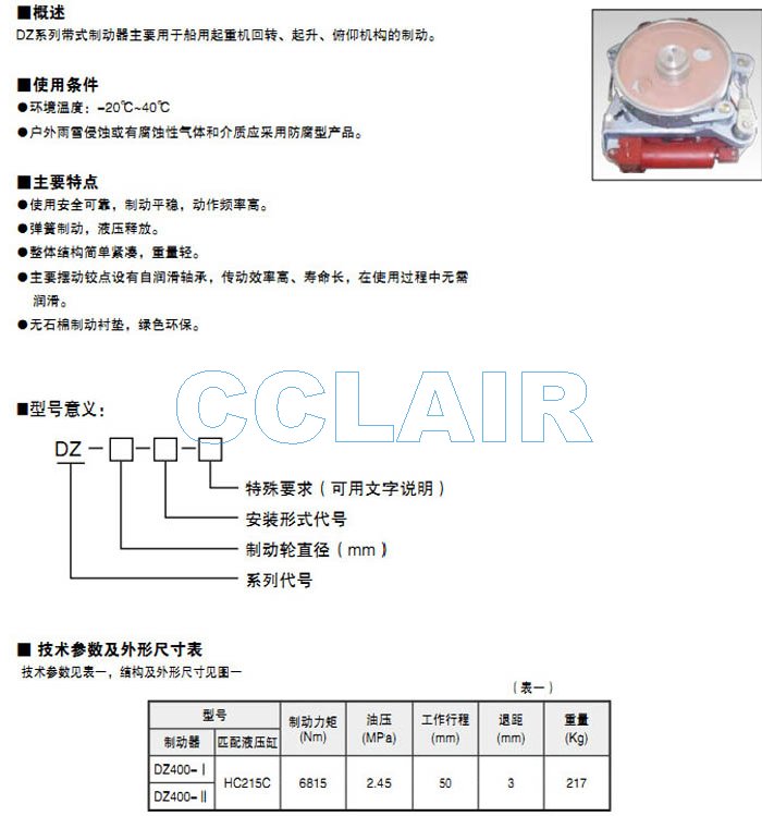 DZ400-I,DZ400-II,DZ480-I,DZ480-II,DZ600-I,DZ800-I,DZ800-II,DZ900-I,DZ900-II,帶式制動器 |