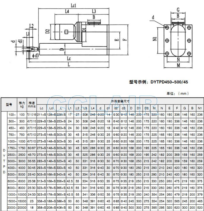 DYTPX100,DYTPX300,DYTPX450,DYTPX750,DYTPX1000,DYTPX1750,DYTPX2500,DYTPX3000,電液推桿 |