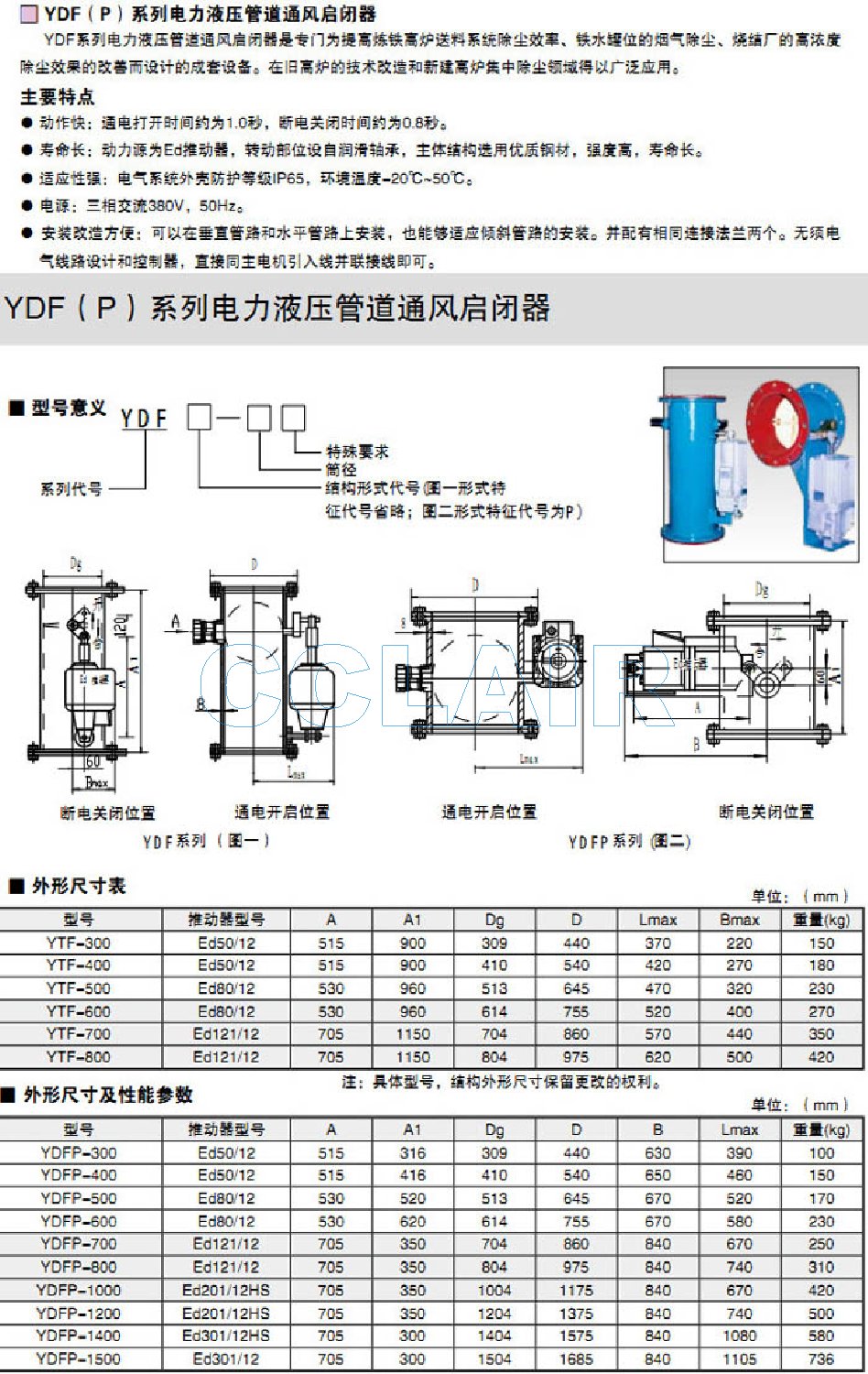 YTF-300,YTF-400,YTF-500,YTF-600,YTF-700,YTF-800,電力液壓管道通風啟閉器