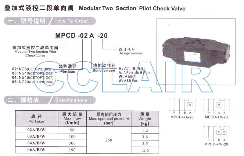 MPCD-02,MPCD-03,MPCD-04,MPCD-06,MPCD-02A-20,MPCD-02B-20,MPCD-02W-20,疊加式液控二段單向閥