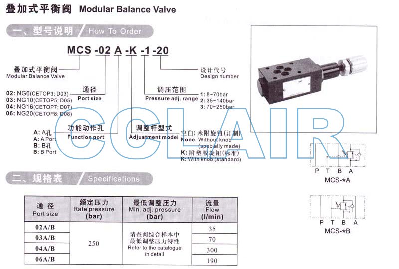 MCS-02A,MCS-02B,MCS-03A,MCS-03B,MCS-06A,MCS-06B,MCS-02A-K-1-20,MCS-02A-K-2-20,疊加式平衡閥