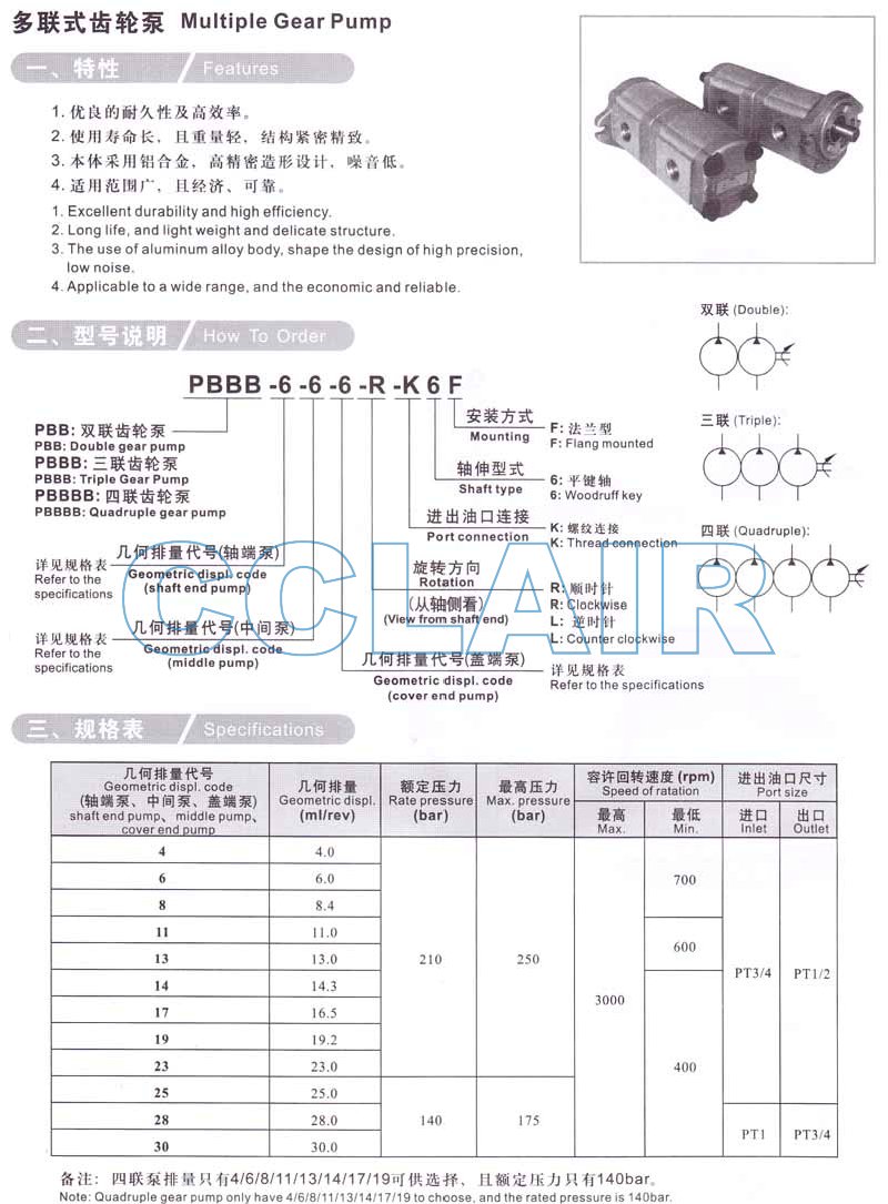 PBBBB-4,PBBBB-6,PBBBB-8,PBBBB-11,PBBBB-23,PBBBB-30,PBBBB-13,PBBBB-4-4-4-4-R-K6F,多聯(lián)式齒輪泵