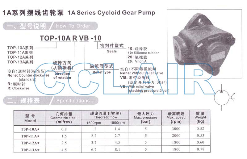 TOP-10A,TOP-11A,TOP-12A,TOP-13A,TOP-10ARVB-10,TOP-11ARVB-10,TOP-12ARVB-10,TOP-13ARVB-10,1A擺線齒輪泵