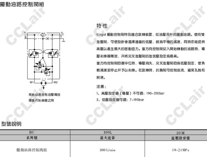 BC-100L-20M,擺動(dòng)油路控制閥組