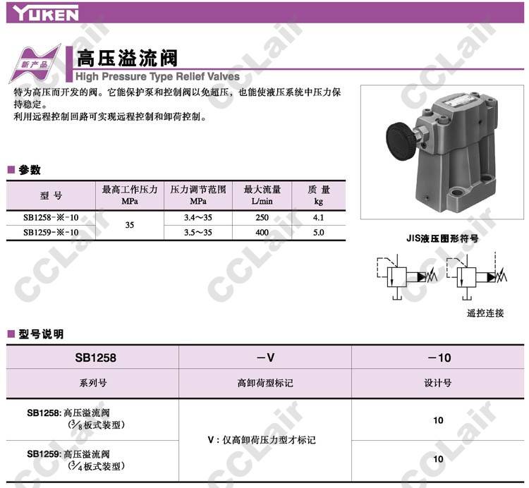 SB1258-V-10,SB1259-V-10,高壓溢流閥,YUCIYUKEN榆次油研