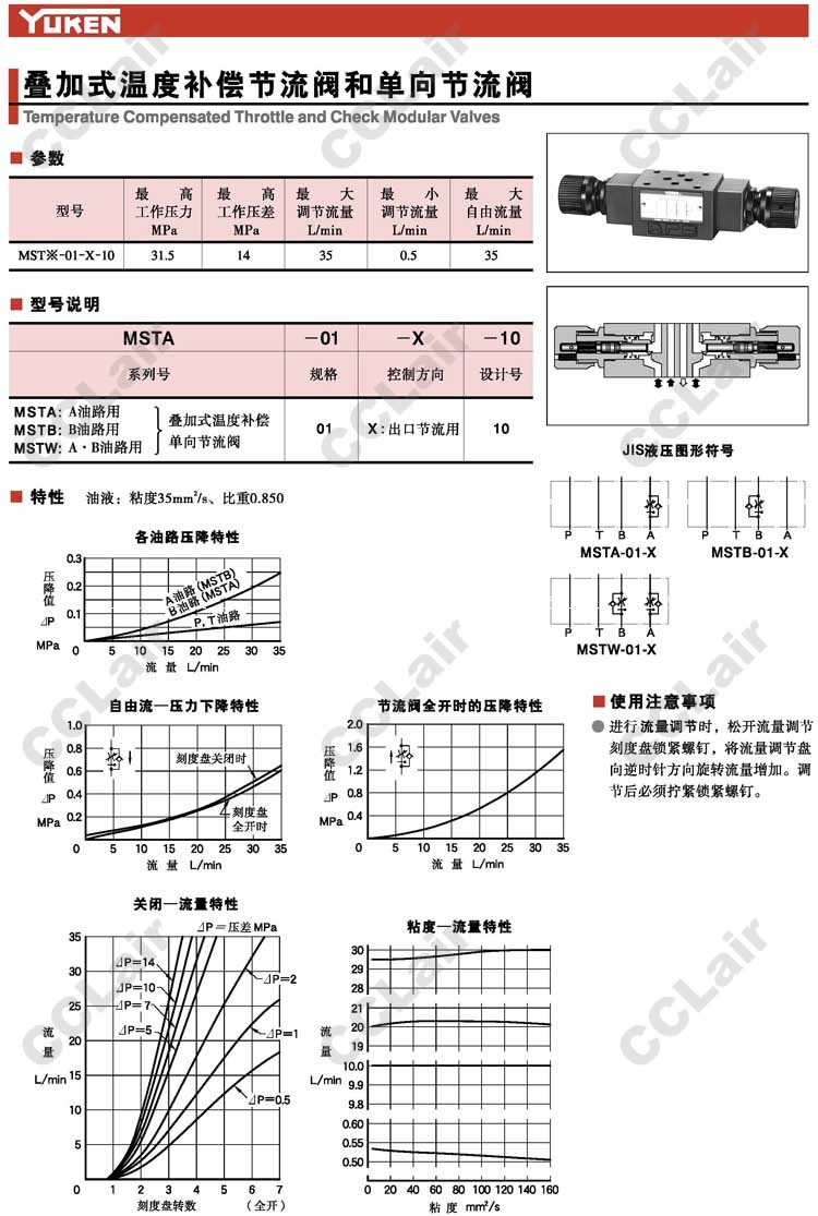 MSTA-01-X-10,MSTB-01-X-10,MSTW-01-X-10,疊加式溫度補償單向節(jié)流閥,YUCIYUKEN榆次油研
