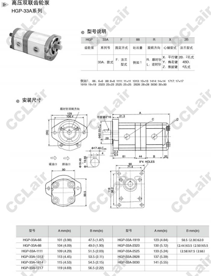 HGP-33A-F-66RX-2B,HGP-33A-F-88RX-2B,HGP-33A-F-1111RX-2B,高壓雙聯(lián)齒輪泵