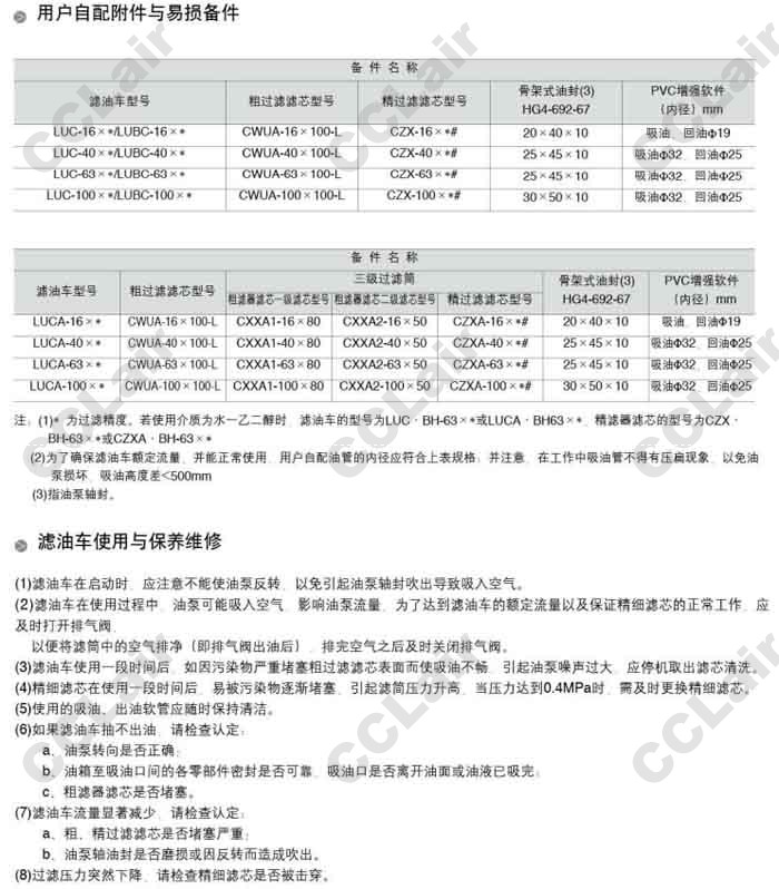 LUC-16×100,LUC-40×100,LUC-63×100,LUCA-16×100,LUCB-16×100,LUCB-100×100,L濾油車
