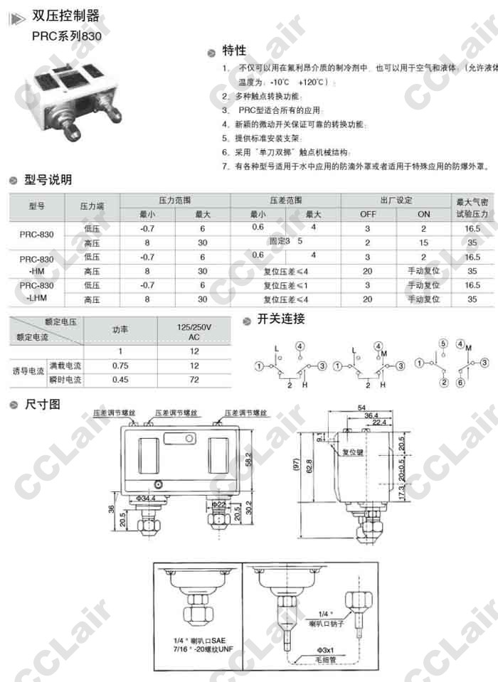 PRC-830,PRC-830-HM,PRC-830-LHM,雙壓控制器