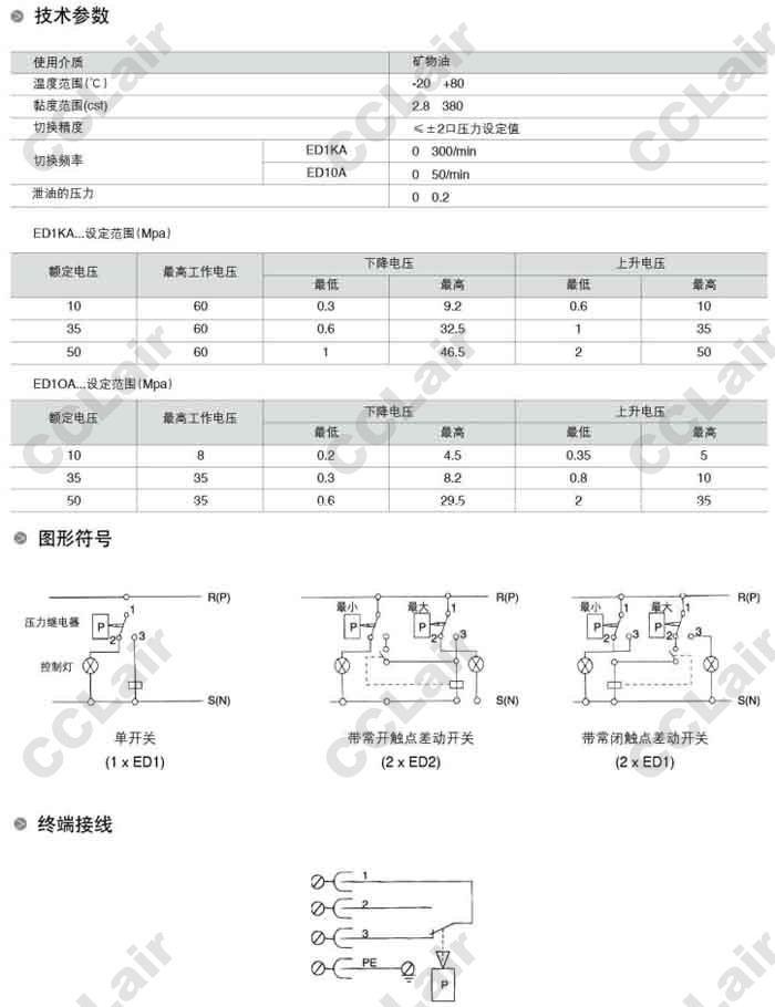 ED1-OA20,ED1-KA20,ED1-OA20-315-L24V-G,ED1-KA20-315-L24V-G,ED1-OA20-315-L220V-G,柱塞壓力繼電器