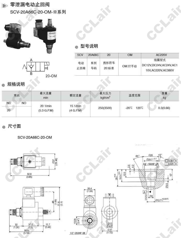 SCV-20A66C-20-OM-DC12V,SCV-20A66C-20-OM-DC24V,SCV-20A66C-20-OM-AC24V,零泄漏電動止回閥 |