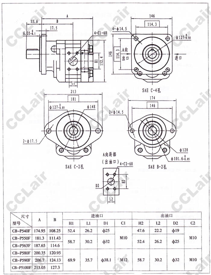 CB-P540F,CB-P550F,CB-P563F,CB-P580F,CB-P590F,CB-P5100F,齒輪泵,YUCIYUKEN