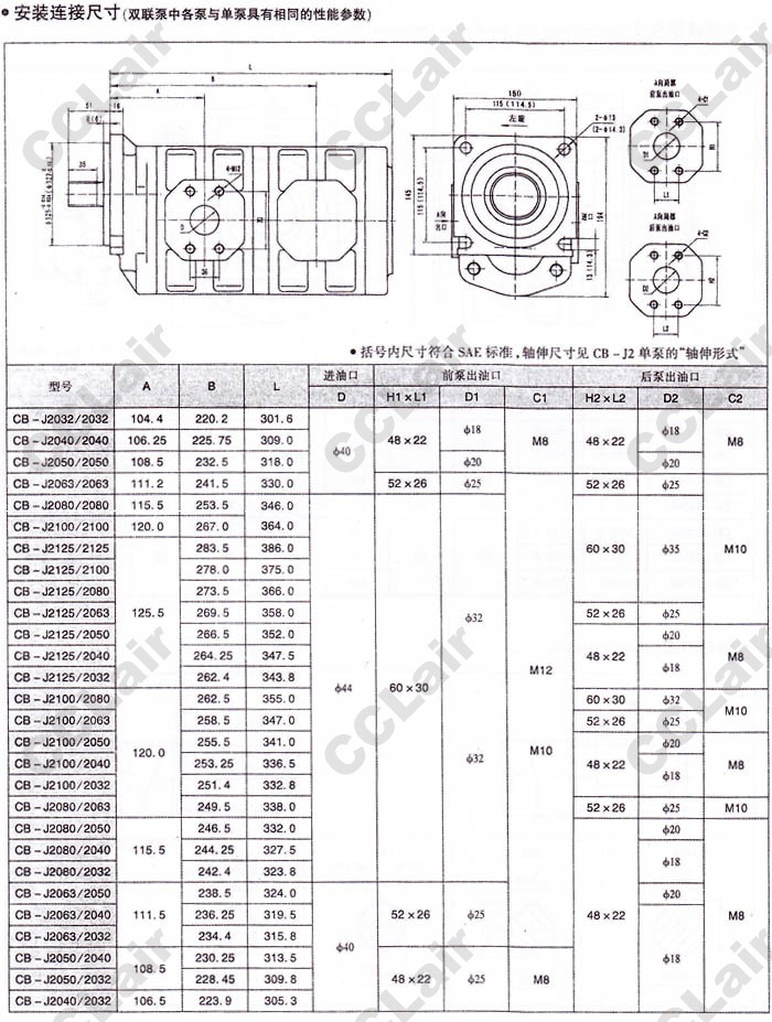 CB-J2032,CB-J2040,CB-J2050,CB-J2063,CB-J2080,CB-J2100,CB-J2125,CB-J2032-F1-1R,高壓齒輪油泵 YUCIYUKEN