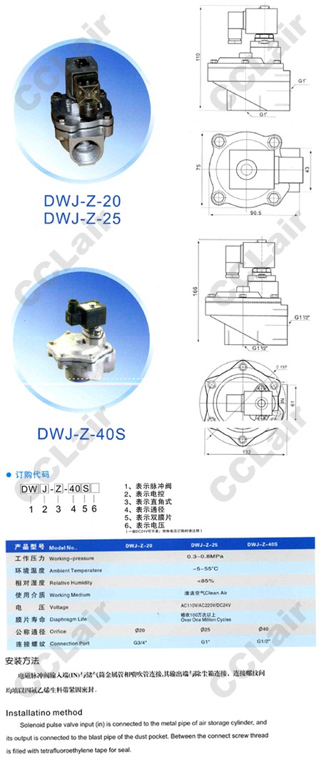 DWJ-Z-20,DWJ-Z-25,DWJ-Z-40S,直角式電磁脈沖閥