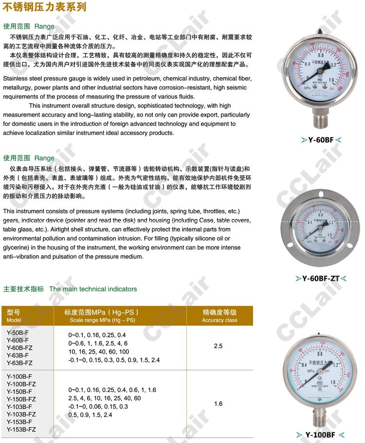 Y-50B-F,Y-60B-F,Y-60B-FZ,Y-63B-F,Y-63B-FZ,Y-100B-F,Y-100B-FZ,不銹鋼壓力表