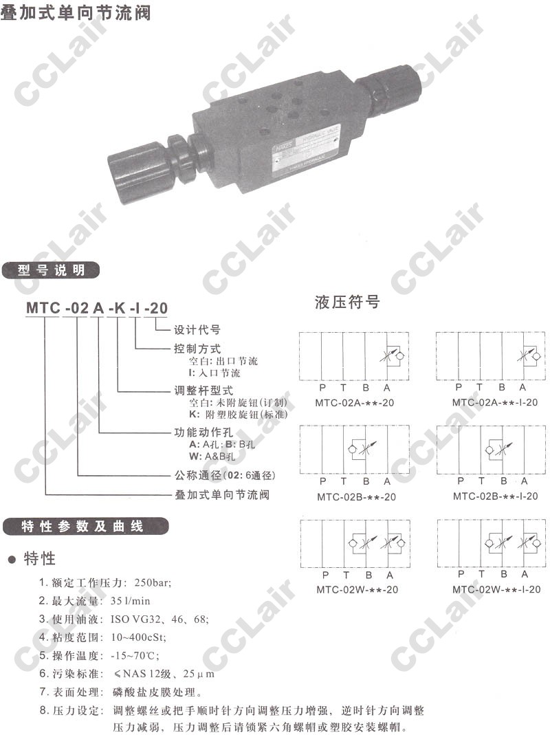 MTC-02A-K-I-20,MTC-02B-I-20,MTC-02A-K-20,MTC-02A-20,MTC-02A-I-20,MTC-02B-K-20,疊加式單向節(jié)流閥