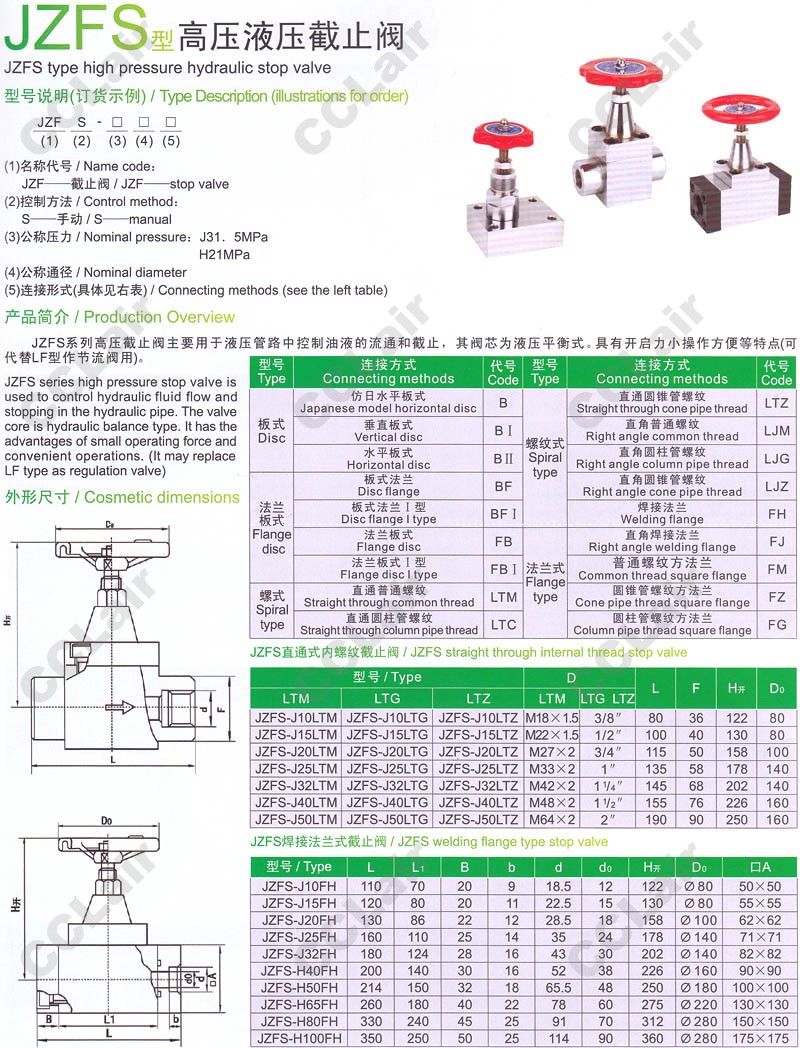 JZFS-J15LTM,JZFS-J20LTM,JZFS-J32FH,JZFS-65FH,JZFS-J100FH,JZFS-J40FH,JZFS-J50FH,高壓液壓截止閥