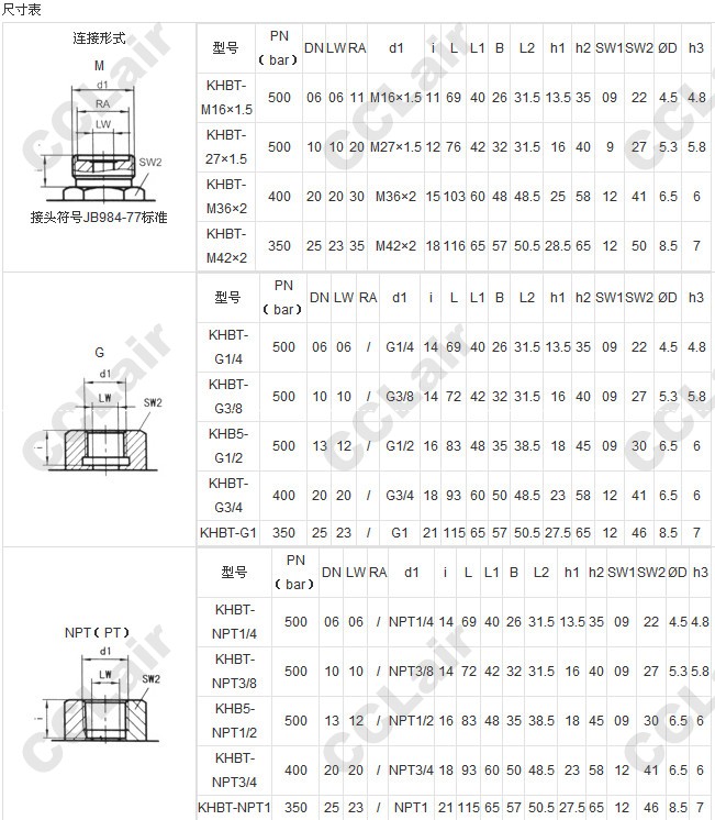 KHBT-M16*1.5,KHBT-G1/4,KHBT-08LR,KHBT-10SR,KHBT-M36*2,KHBT-G3/8,KHBT-NPT3/8,KHBT-12LR,