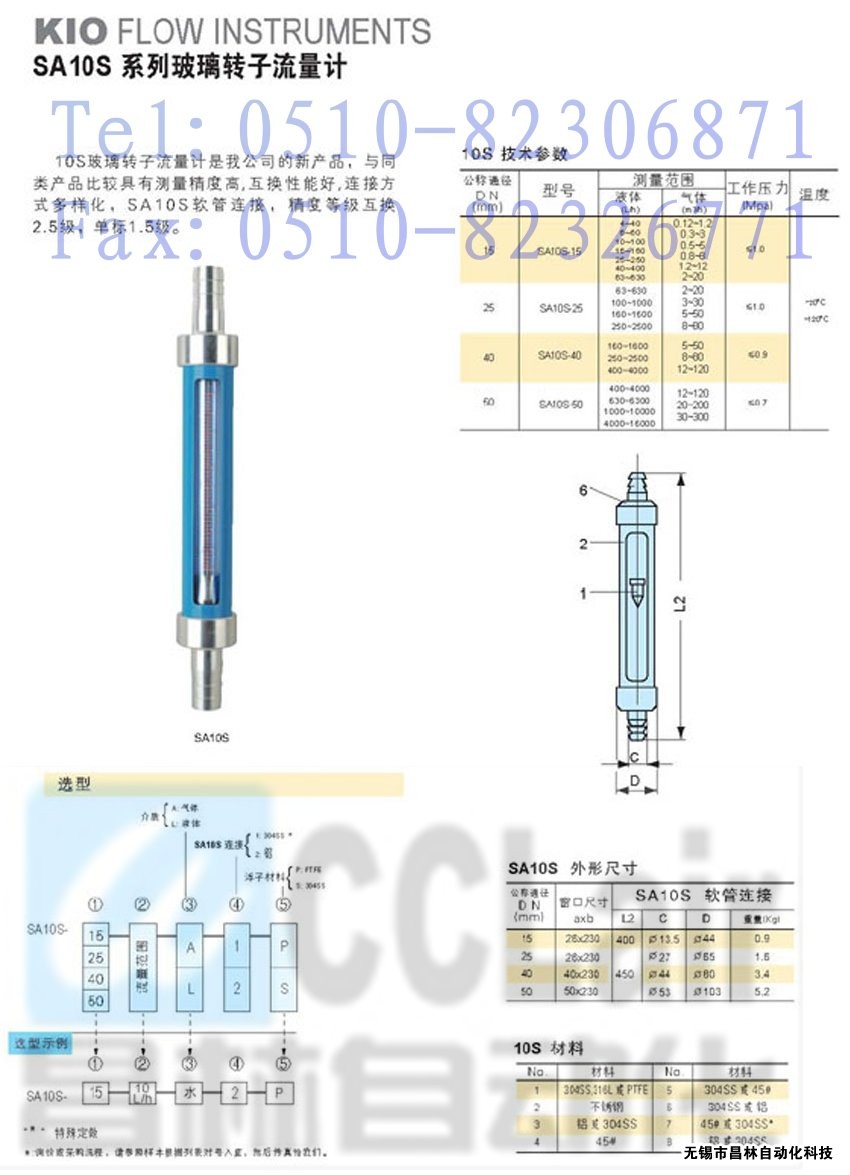 SA10S-15,SA10S-25,SA10S-40,SA10S-50,玻璃轉(zhuǎn)子流量計(jì)