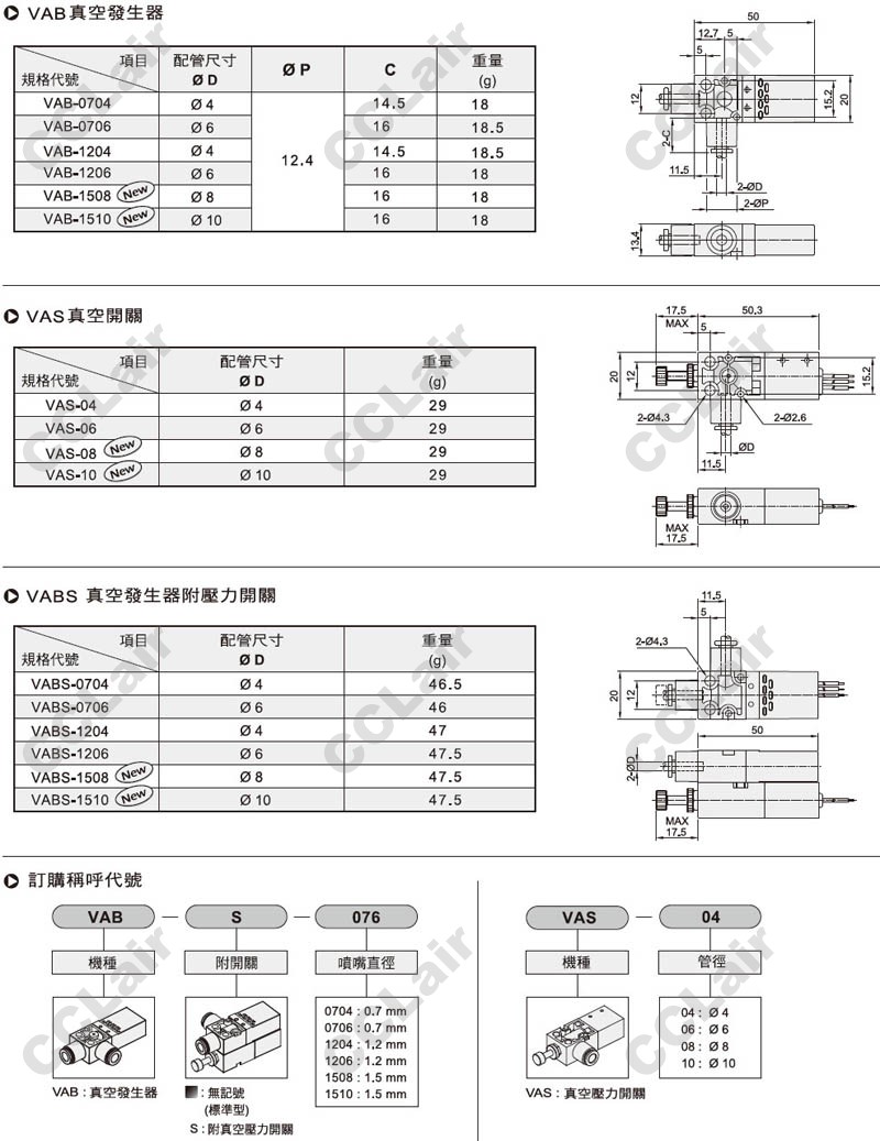 氣立可(chelic),VAB-0704,VAB-1204,VAB-1508,VAS-04,VAS-06,VAS-08,VABS-0706,VABS-1204,VABS-1508 |
