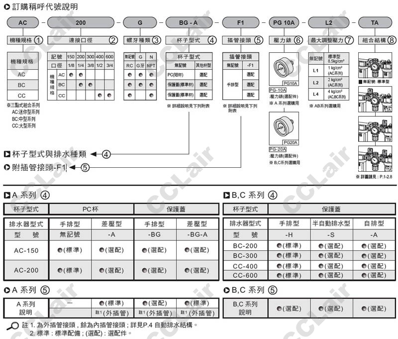 氣立可(chelic),AC-150,AC-200,BC-200,BC-300,CC-400,CC-600,AC-150-G-BG-A-F1-PG10A,