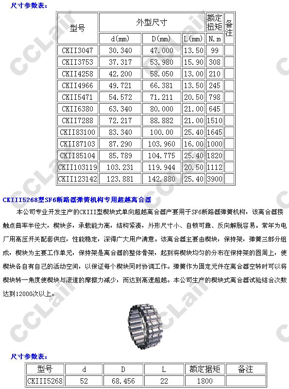 CKII3047,CKII3753,CKII4258,CKII5471,CKII6380,CKII7288,CKII83100,CKII871003,CKIII5268單向離合器 |