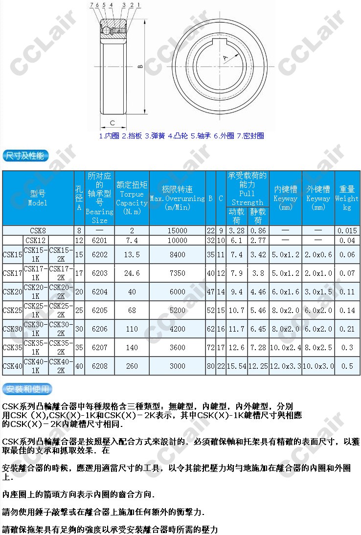 CSK8,CSK12,CSK15,CSK17,CSK20,CSK25,CSK30,CSK35,CSK40,CSK15-1K,CSK17-1K,CSK15-2K,CSK17-2K,凸輪離合器