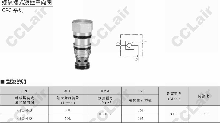 CPC-063,CPC-093,螺紋插式液控單向閥