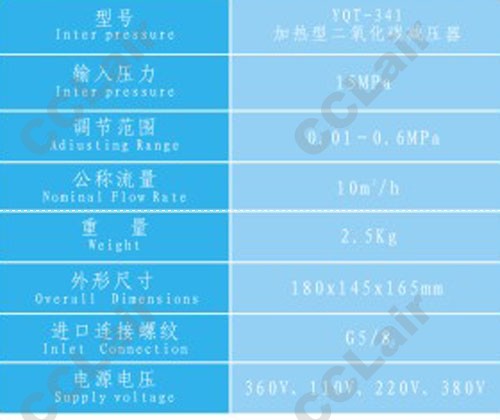 YQT-341,加熱型二氧化碳減壓器,CCLair