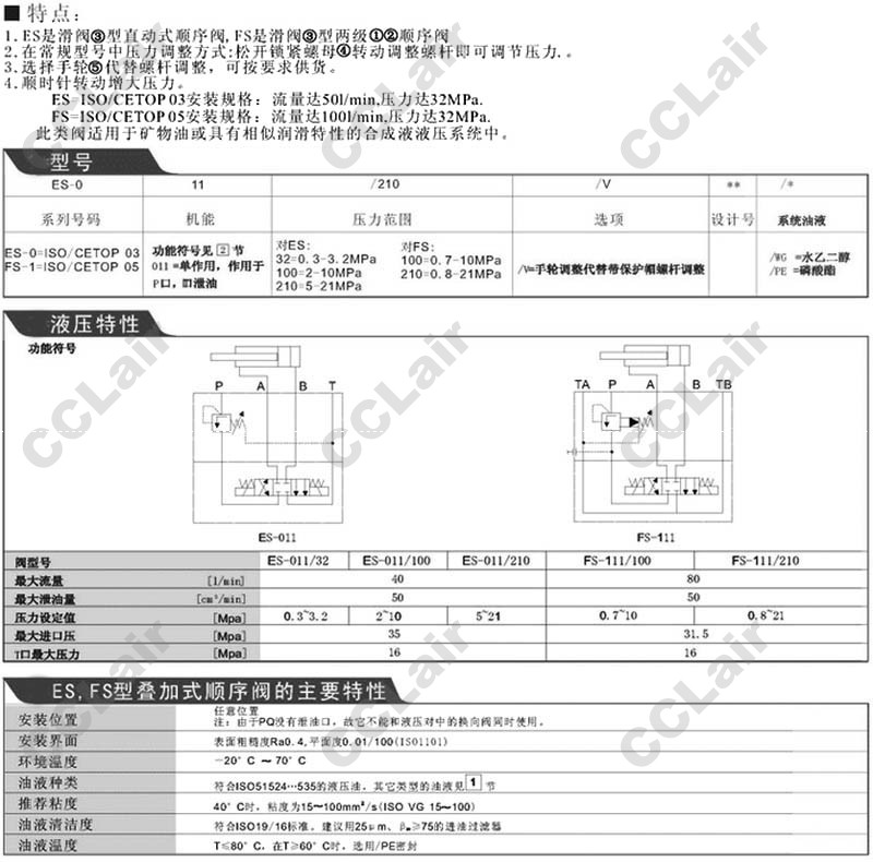 ES-011/32,ES-011/100,ES-011/210,FS-111/100,FS-111/210,疊加式順序閥 |